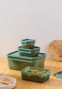 POSODE ZA SHRANJEVANJE MASTERSEAL ECO 3 DELNI SET 0,8 L • 100 % vodotesno • Pralno v pomivalnem stroju • Izdelano iz 85 % certificiranega polipropilena na biološki osnovi ROČNI
