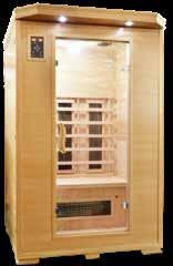 Sanotechnik Kombi 60635 za 2 osebi, vrsta lesa: kanadski macesen (Hemlock) vrsta sevala: 5 keramičnih seval in 2 karbonsko- magnezijeva sevala, zmogljivost-moč: 2100 W, 6 mm varnostno steklo - vrata in sprednje steklo barvna terapija: zelena, modra, rdeča, rumena vgrajen radio in USB priključek, elektronski upravljalec, zvočnik, ventilator, dimenzije: 124x116x190 cm