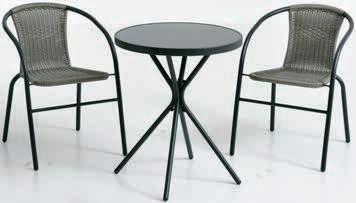 Miza: Plastika, zaščitena pred UV-žarki. Š78xD59xV43 cm. Dvosed in stol: Plastika, zaščitena pred UV-žarki. Z blazinami.*