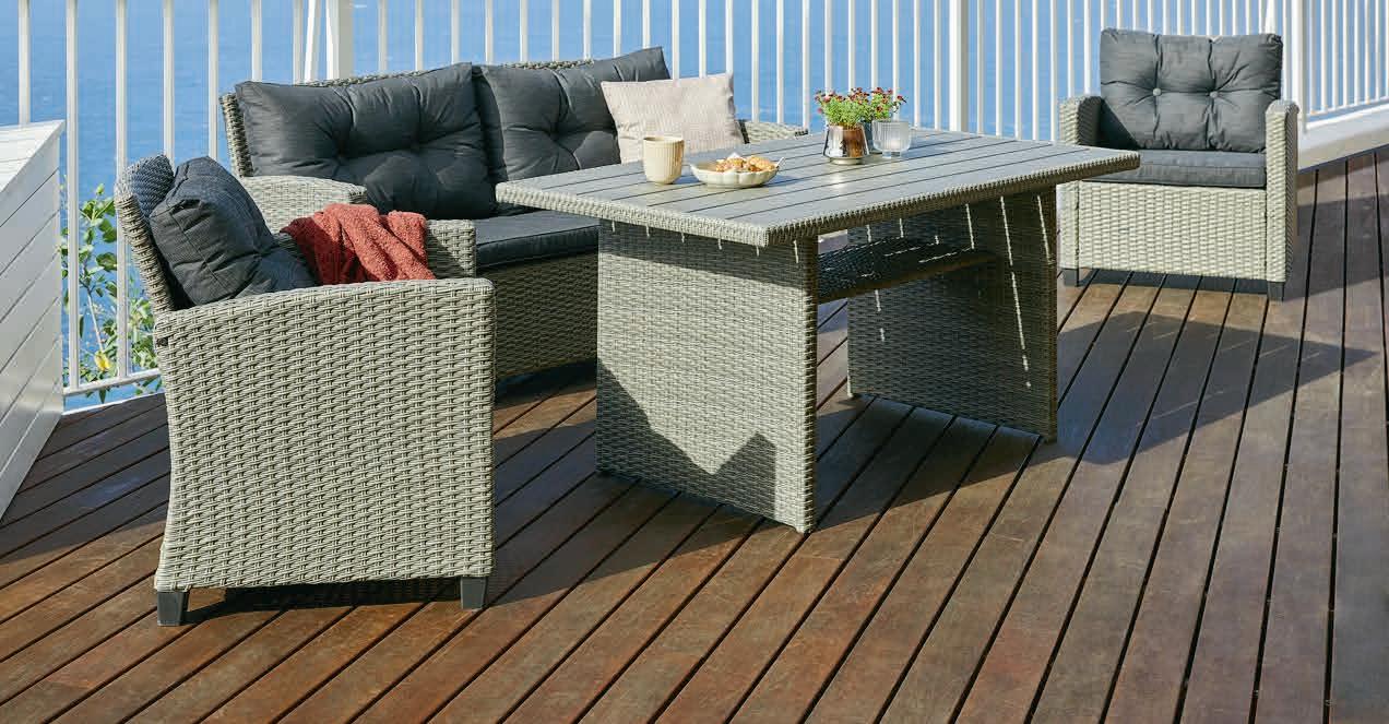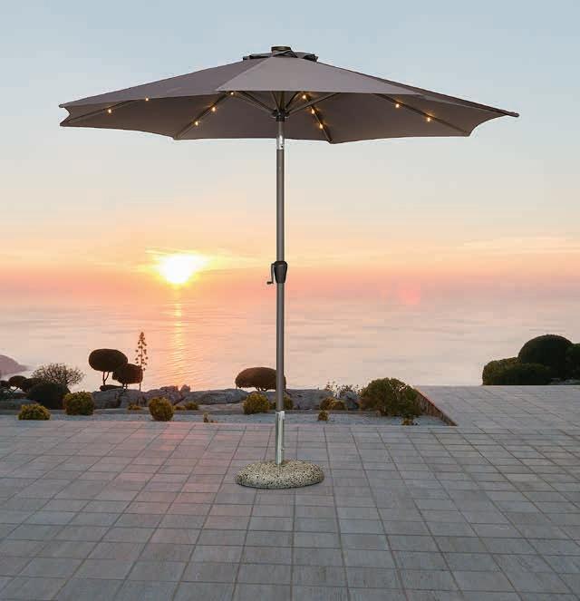 6 -32% 100.SENČNIK ASKIM Platno iz vodoodbojnega*** poliestra z UV-zaščito in drog iz aluminija. S solarnimi LED-lučkami, mehanizmom za nagib, ročico za odpiranje in ventilacijsko odprtino. Ø300xV246 cm 149.STOJALO ZA SENČNIK NARVIK 75.-22% 2850 SENČNIK STENSTRUP Platno iz poliestra z UV-zaščito in drog iz jekla. Z mehanizmom za nagib in nastavljivo višino. S prevleko. Ø200xV145-225 cm 36,99 STOJALO ZA SENČNIK LIRYPE 8.-40% 100.- KLOP KLINT Jeklo in umetni les. Š125xV81xG58 cm 169.976- 14601 DT -40% 3250 VRTNA BLAZINA STOREHOLM Za ležalnik. 60x190x3 cm 54,99 976- 14601 DTI -31% 55.VRTNA BLAZINA HOPBALLE Luksuzna blazina s trpežno, strukturno tkano