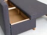 Trosed iz tkanine. Sedežne in hrbtne blazine iz pene. S prostorom za shranjevanje. Podaljšek se lahko uporablja na obeh straneh. Spalna površina 110x213 cm. Š214xV69xG81/122 cm 429.-28% 135.-