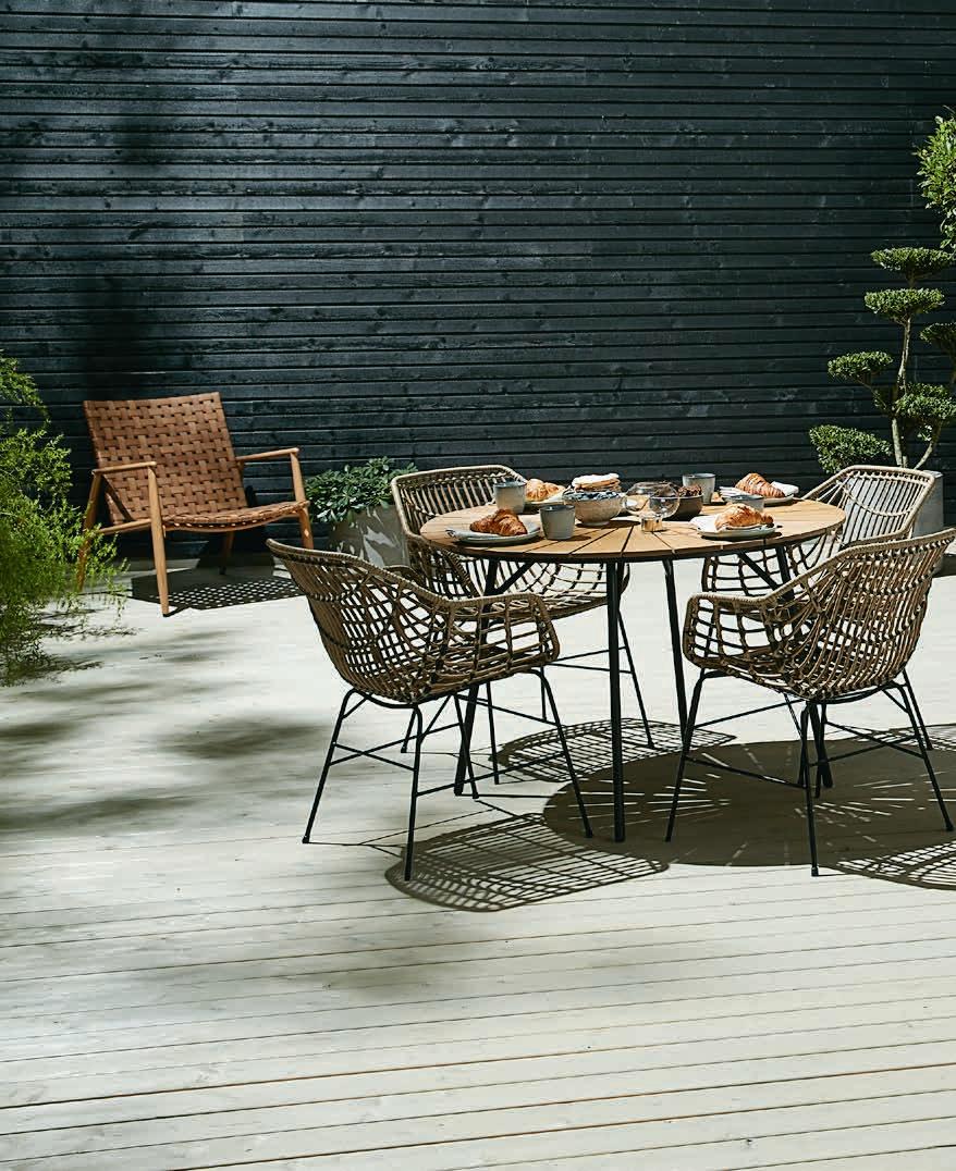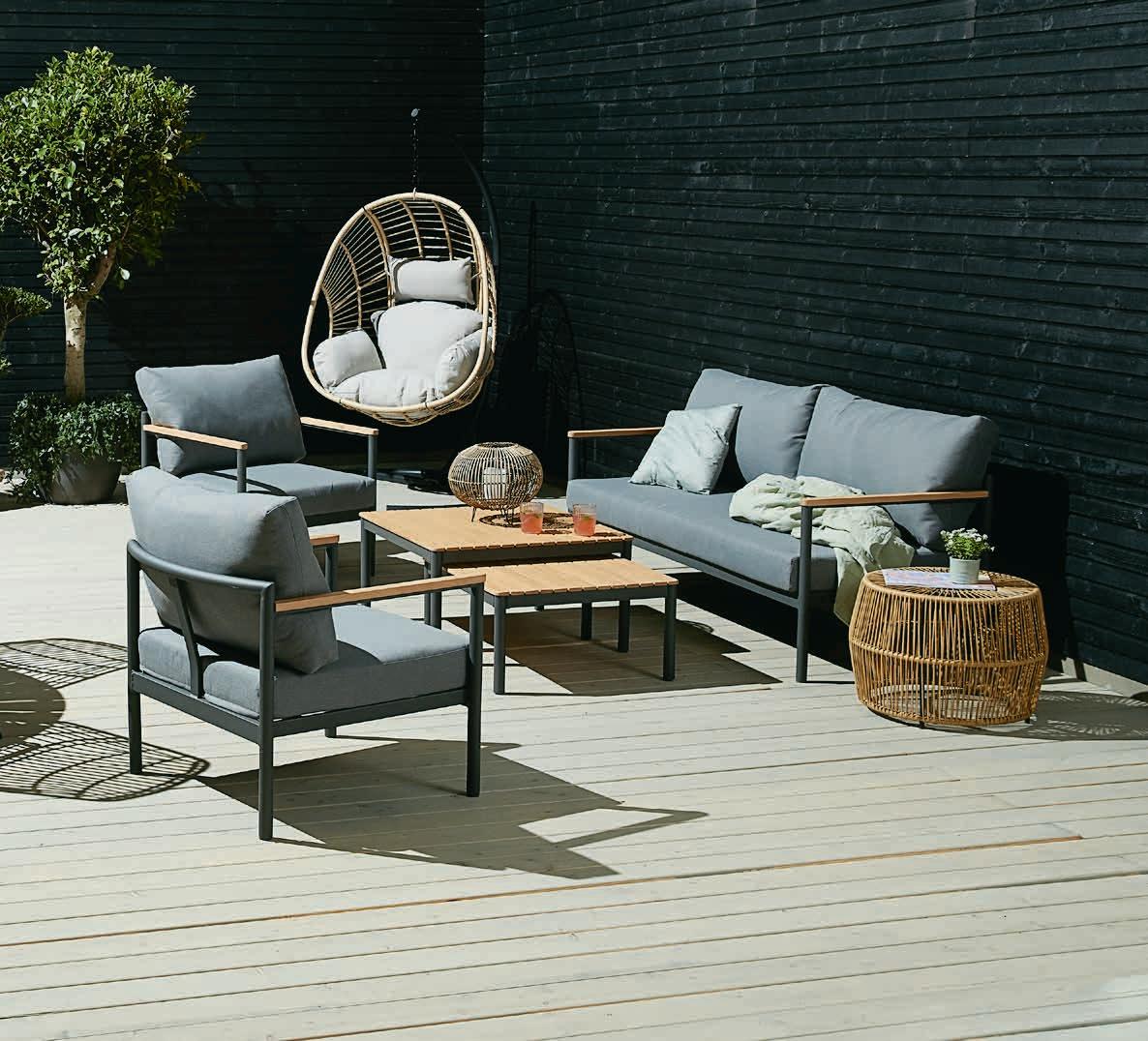 STOL GJERN Jeklo in umetni ratan. S stojalom in luksuznimi blazinami s trpežno, strukturno tkano prevleko. Š118xV184xG106 cm 399.- 5) VRTNA GARNITURA ODDESUND Miza: Aluminij in oljen FSC®-trdi les. Š72/62xD72/62xV39/32 cm. Trosed in stol: Aluminij in oljen FSC®-trdi les. Z luksuznimi blazinami s trpežno prevleko. 1699.- 1000.-