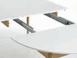 Miza: Masiven les in MDF. Ø110xV75 cm. Z 2 miznima kriloma. Velikost razširjene mize Š110xD200xV75 cm. Stol: Tkanina in masiven les. Miza* 459.- 300.- Stol 129.- 90.-
