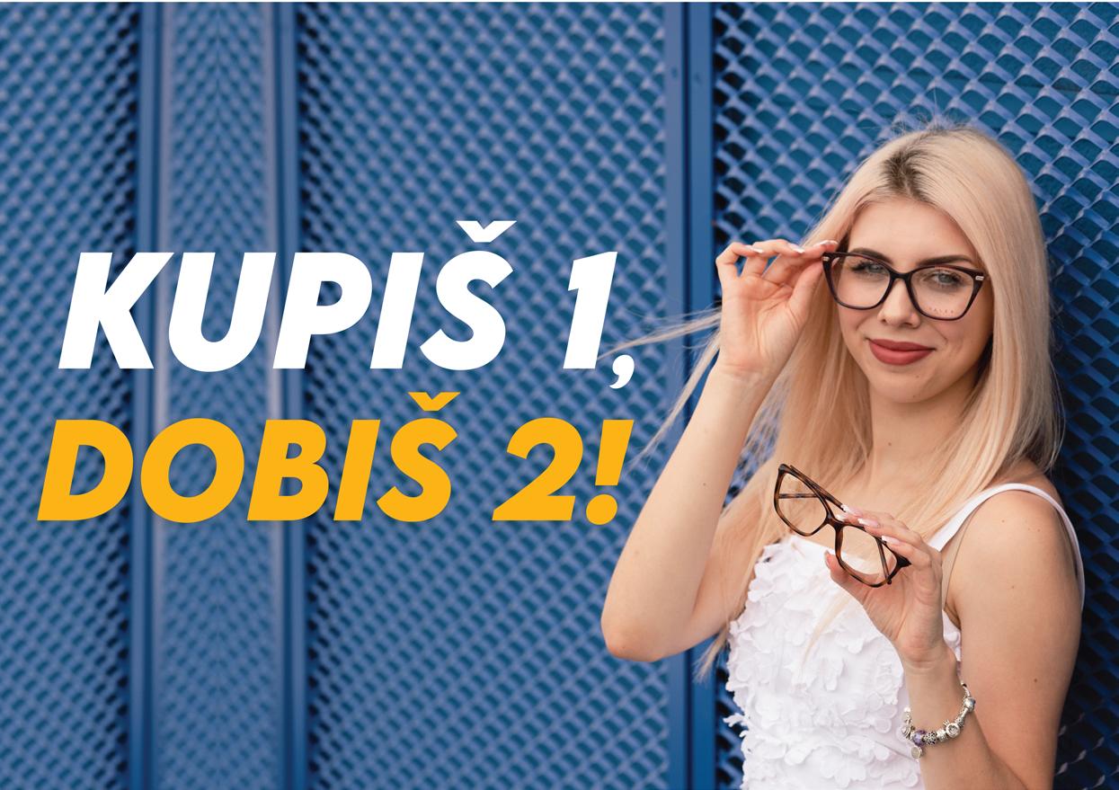 REDNA CENA: 259 € + 1 OČALA S STEKLI BREZPLAČNO + 1 OČALA S STEKLI BREZPLAČNO BREZPLAČNA OČALA *Cena velja pri koriščenju akcije “Kupiš 1, dobiš 2!” za dodaten par korekcijskih očal s stekli.