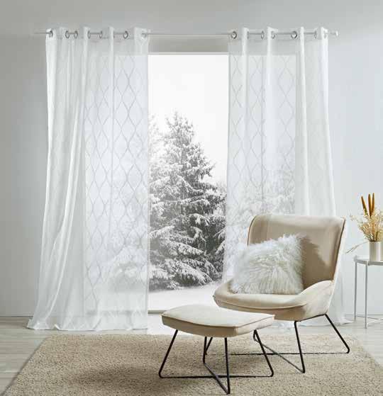 Zavesa z obročki „GAMMA“, 140 X 245 cm, 100% poliestrska vlakna, v beli barvi, z vzorcem. (60320055/01)