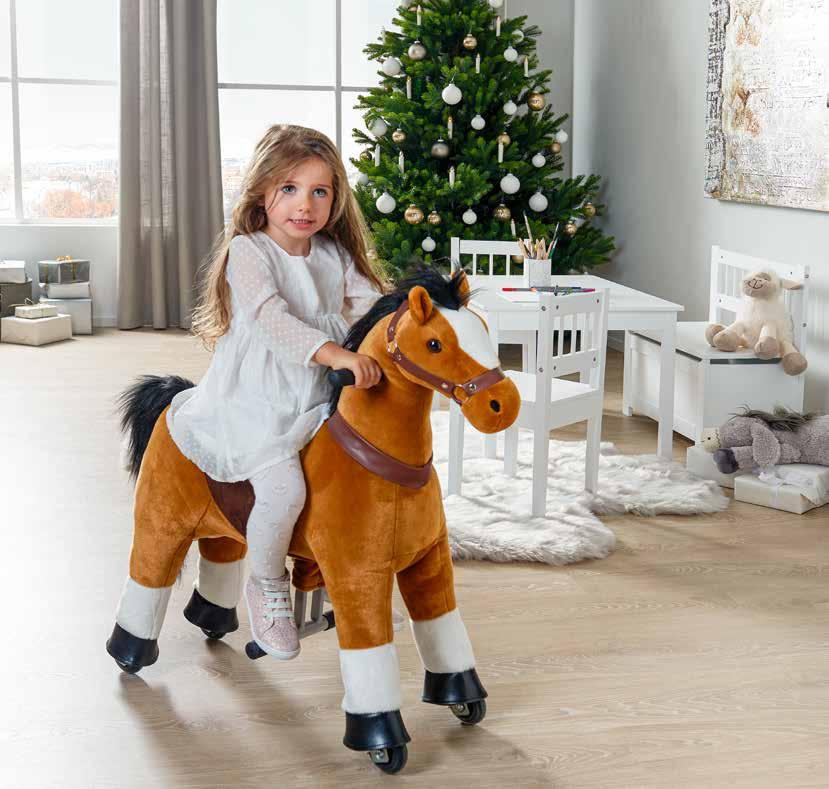 Konjiček na palici, 80 cm, umetna masa, poliestrska vlakna, z zvočnimi učinki (baterije vključene), različne barve. Primeren za otroke od 1,5 do 5 let. (80860021/01,02;0020/01,02)