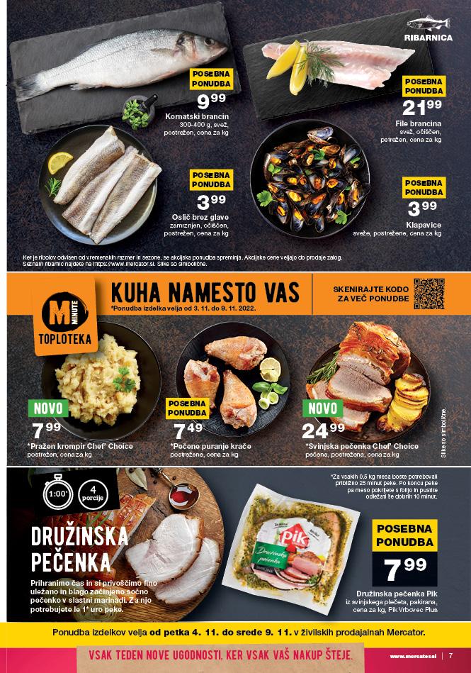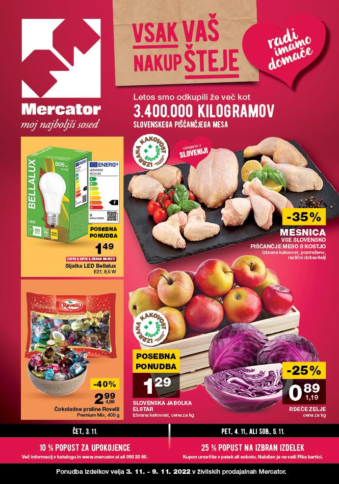 Kupon velja od 3. 11. do 9. 11. 2022 Popust se obračuna pri blagajni. Kupon lahko unovčite večkrat v času veljavnosti v vseh živilskih trgovinah Mercator v okviru razpoložljivega asortimana