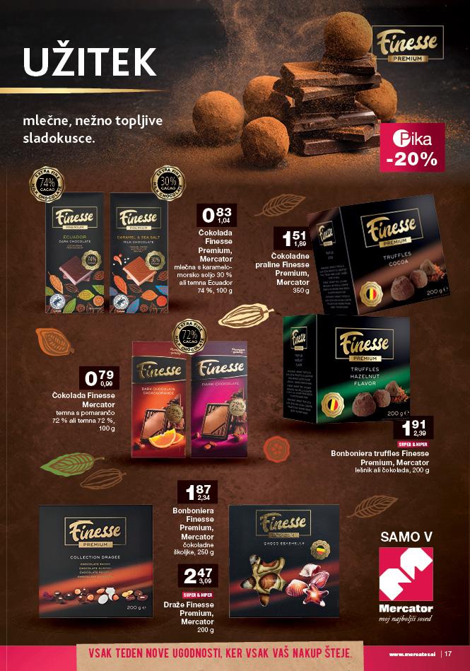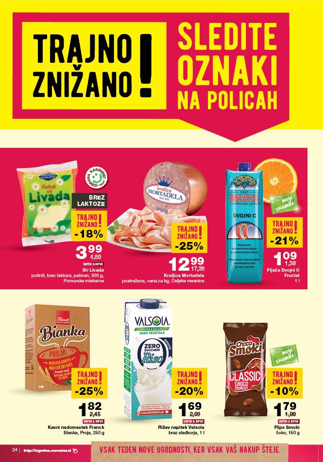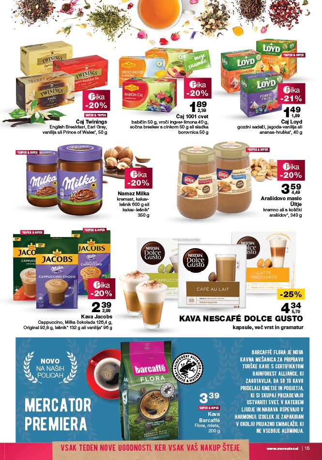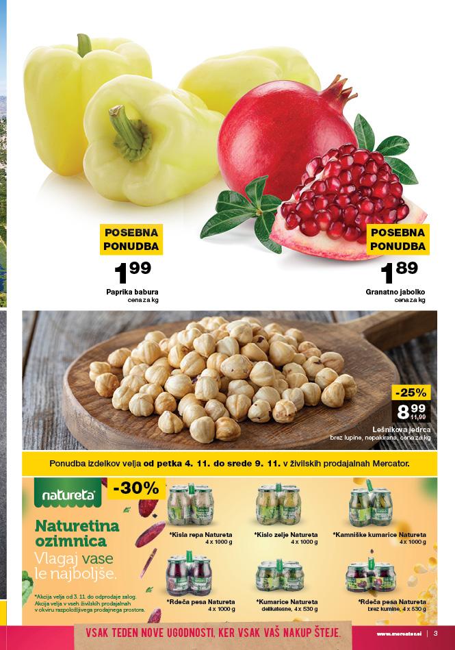 vseh živilskih trgovinah Mercator v okviru razpoložljivega asortimana posamezne prodajalne in spletni trgovini Mercator. Popusti se med seboj ne seštevajo.