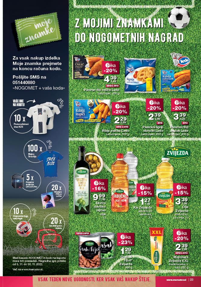 razpoložljivega asortimana posamezne prodajalne in spletni trgovini Mercator. Popusti se med seboj ne seštevajo. Prigrizek za pse Wanpy več vrst, 100 g Kupon velja od 3. 11. do 9. 11. 2022 Popust se obračuna pri blagajni. Kupon lahko unovčite večkrat v času veljavnosti v vseh živilskih trgovinah Mercator v okviru razpoložljivega asortimana posamezne prodajalne in spletni trgovini Mercator. Popusti se med seboj ne seštevajo. Papir Natur Forest 3-slojni, 10/1, 150 lističev -21% 2 59 3,29 Listnato testo Minute Mercator, sveže, 275 g -30% 0 69 0,99 Br stični ohrovt Mercator, pakiran, 350 g -33% 199 2,99 KUPON-LISTTEST KUPON-NATFOREST KUPON-OHROVT KUPON-WANPY