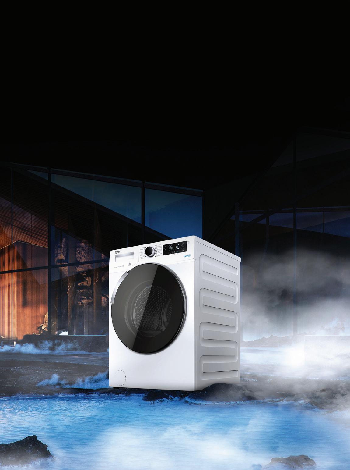 • Inverter PowerDrive motor • WiFi povezava • SteamTech – para • ExtraHygiene odstrani do 99,9 % bakterij • Program Power 59'/32' • Hitri program 20' • Krajšanje programov FastWashing • Osvetlitev bobna • AntiCrease • Popolna AquaStop zaščita • DrumClean – samočistilni program • Program za madeže