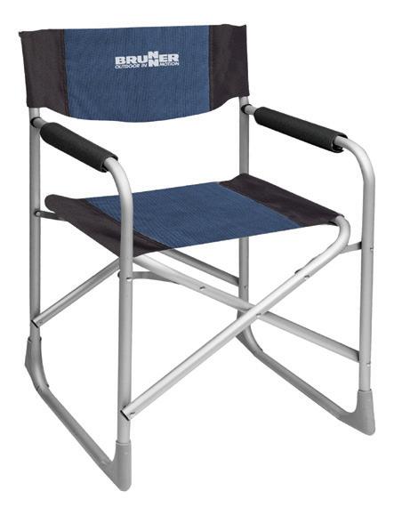 STOL ZA KAMPIRANJE BRUNNER CAPTAIN Lahki, zložljivi, vremensko odporen 100 % poliester, v vreči za shranjevanje in prenos, mere (š/g/v): 48/46/45,5-81 cm, zložen: 46/12/81 cm, aluminijasto ogrodje, sive ali modre barve.