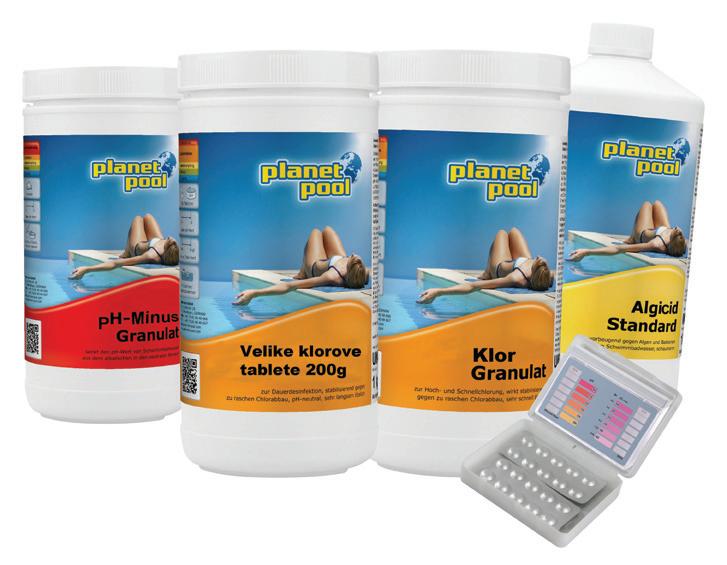Namenjen manjšim bazenom s kartušnim filtrom, priklop na vrtno zalivalno cev, vsebina: sesalec, teleskopska palica, cev za praznjenje bazena.