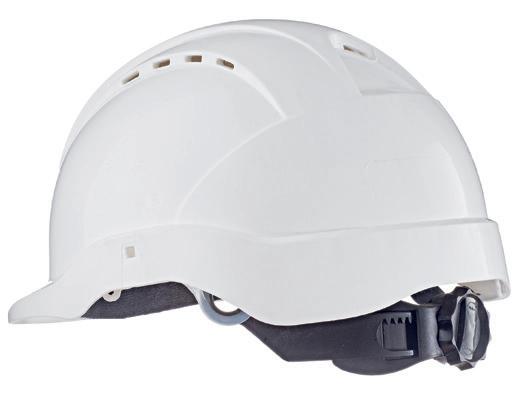 Z regulacijo zadaj, s podbradnikom, z ventilacijskimi luknjami, z možnostjo nastavitve glušnikov, znojni trak na čelu, po standardu EN397, bela, rumene, oranžne ali modre barve.
