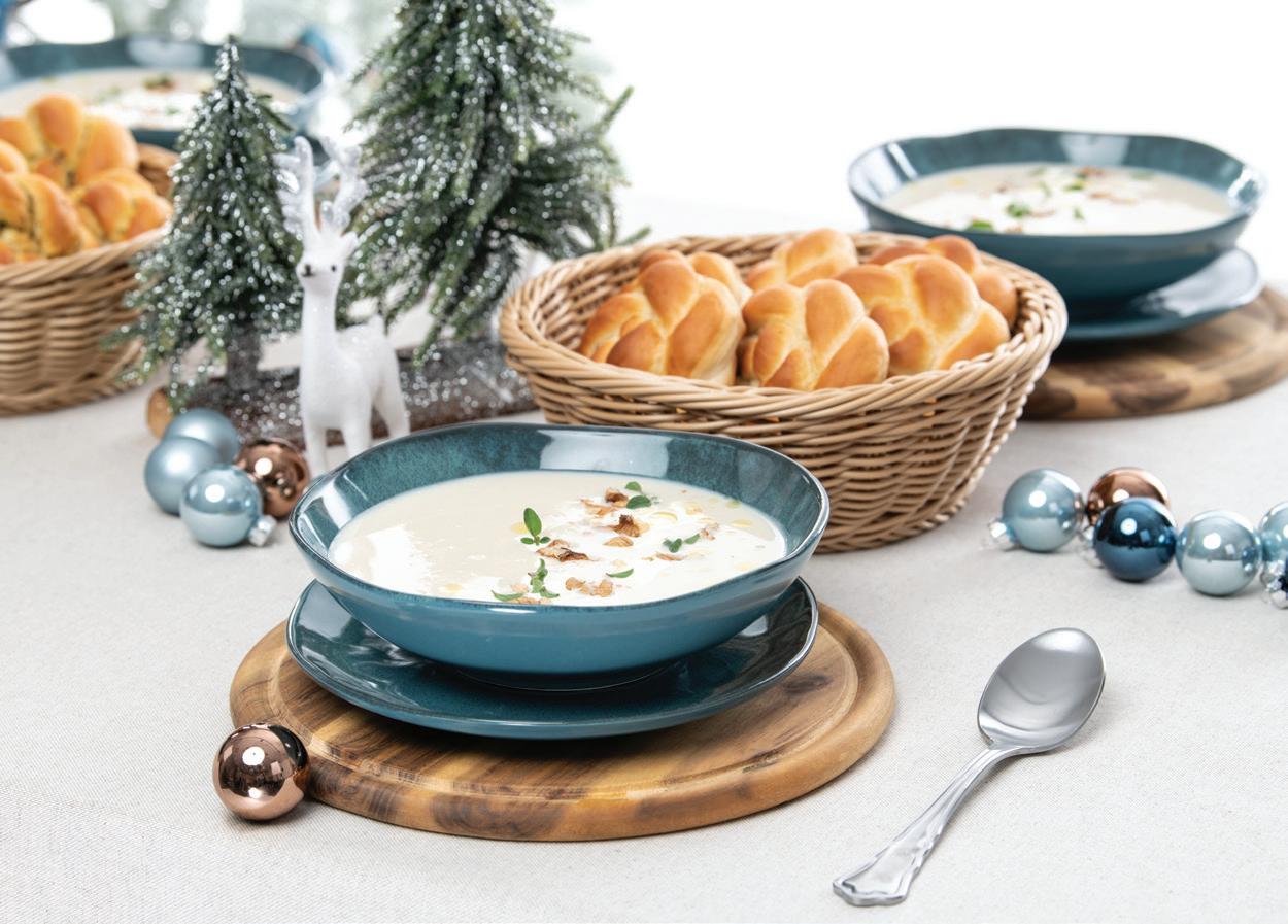 Česnova kremna juha z orehi in štručke s provansalskimi zelišči