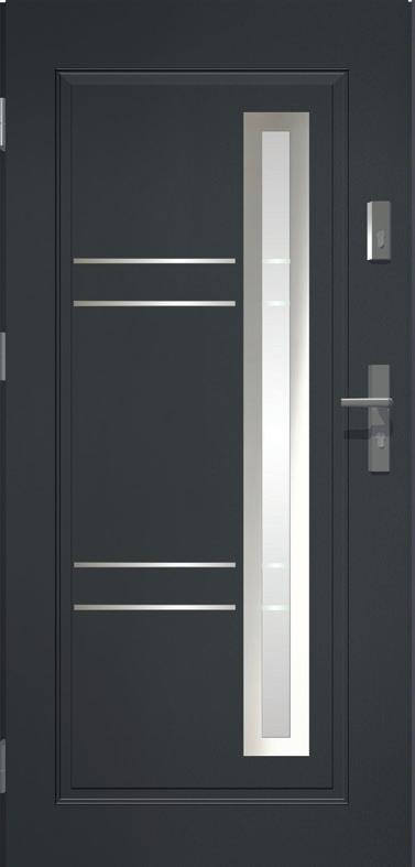 55 mm, prevlečeno s PVC in UV obstojno folijo, 3-točkovna glavna in dodatna ključavnica, kaljeno mlečno steklo debeline 52 mm z obojestransko Inox obrobo, prag iz nerjavnega jekla, s tesnilom, mere (š/v): 999/2.068 mm.