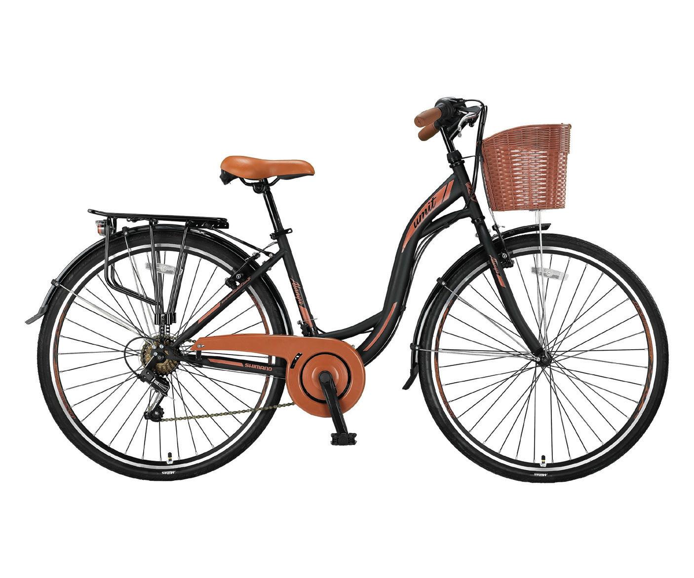 71,12 cm (28”), V-brake zavorni sistem, Shimano oprema, kolesa so opremljena za vožnjo v mraku, črne barve.