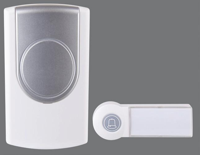 Doseg oddajanja: do 100 m na prostem (v pozidanem prostoru lahko manj), vodoodporna tipka z zaščito IP44, baterijski vložek A23 za napajanje tipke priložen, 3× AA za napajanje zvonca niso priloženi.