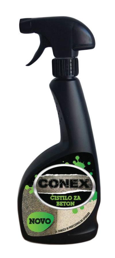 Z betona učinkovito odstranjuje grafite, madeže olja, barve, lesne smole, rje in ostalo umazanijo, uporablja se tudi za odstranjevanje zasušenega betona na gradbenem orodju, Conex nanesite na površino, počakajte 3-5 minut in temeljito sperite z vodo.