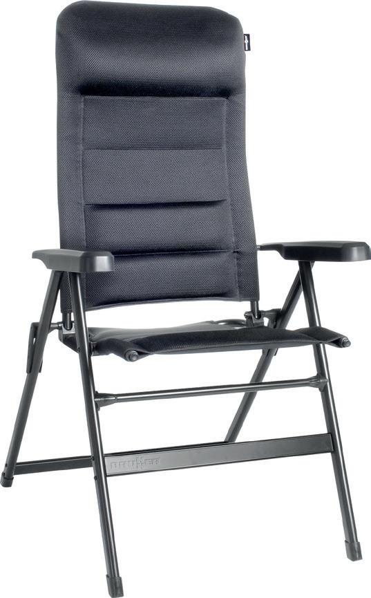 STOL ZA KAMPIRANJE BRUNNER CAPTAIN Lahki, zložljivi, vremensko odporen 100 % poliester, v vreči za shranjevanje in prenos, mere (š/g/v): 48/46/45,5-81 cm, zložen: 46/12/81 cm, aluminijasto ogrodje, sive ali modre barve.