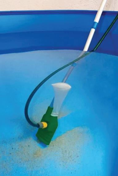Namenjen manjšim bazenom s kartušnim filtrom, priklop na vrtno zalivalno cev, vsebina: sesalec, teleskopska palica, cev za praznjenje bazena.