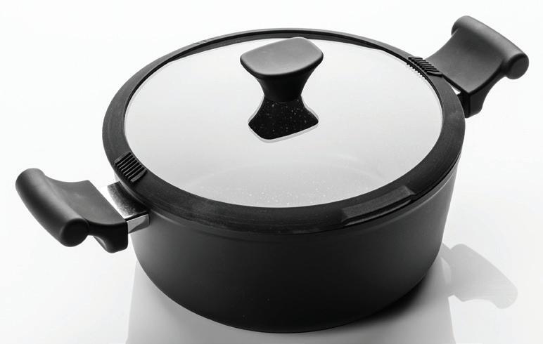 KOZICA S POKROVOM ENAMELIE METISS Pokrov iz temperiranega stekla odpornega na udarce z dodatno silikonsko obrobo, primerna za vsa kuhališča, tudi za indukcijska, notranji premaz ILAG Ultimateature.