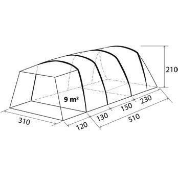 Mere notranja/zunanja: ø 145/196 cm, višina: 71 cm, število šob: 140, prostornina: 795 l, vključuje 2 vzglavnika iz vrhunske PU pene in 1 večbarvno LED lučko, za 4 osebe.