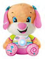 Nova Fisher Price kužkova sestrica je pravi crkljivček. Med raziskovanjem bo malček spoznal dele telesa, več kot 100 prvih besed, barve in še mnogo več. Ima več kot 75 pesmic za prepevanje, melodij in fraz. Uči črke in abecedo, številke in štetje, barve in dele telesa.