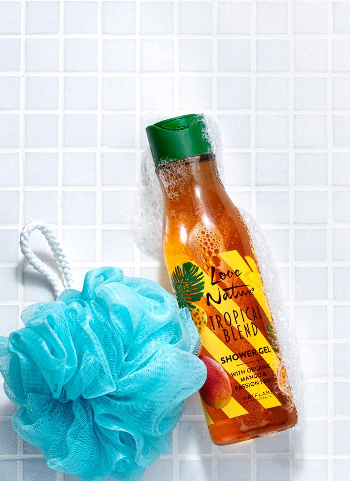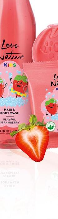Love Nature poživljajoč gel za prhanje/piling z meto in malinami iz biološke pridelave 250 ml.