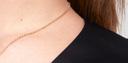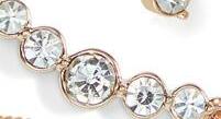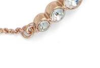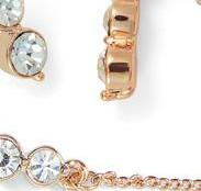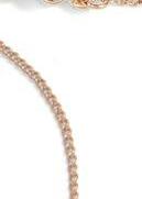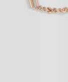 Cinkova zlitina, nerjaveče jeklo, medenina. Prevleka v rožnato zlati barvi. Dolžina ogrlice: 43 + 6 cm. Verižica zapestnice: 11,8 cm. Uhani: 1,6 cm. 45767