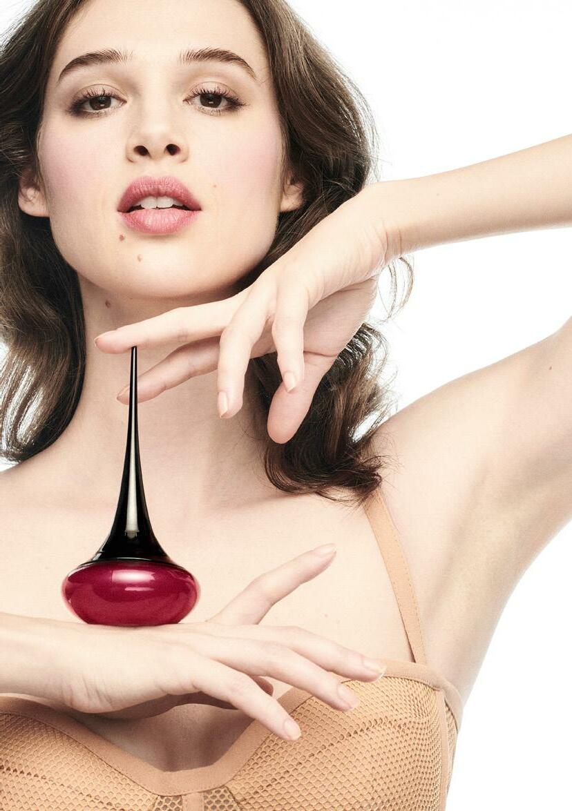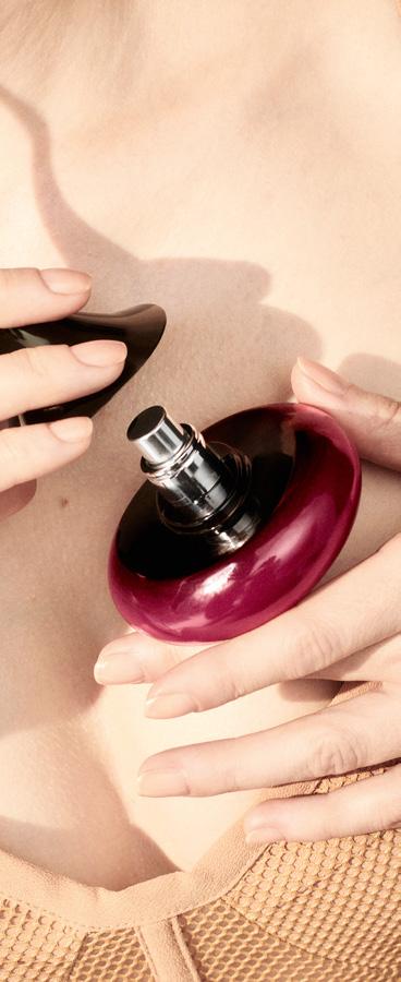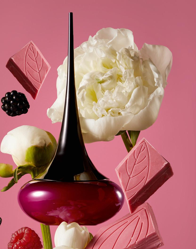Dizajn stekleničke črpa navdih iz ženstvenih oblin in kapljice ruby čokolade, ki odsevajo bistvo te dišave.