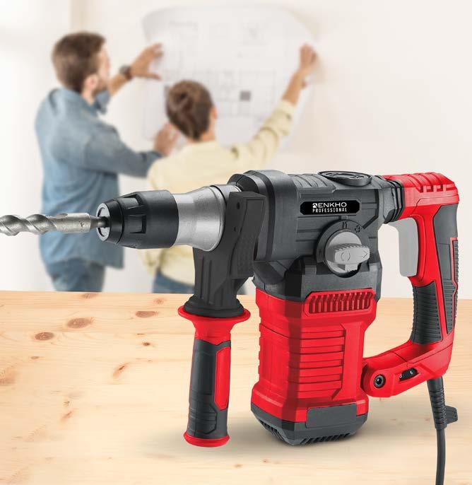 UDARNI VRTALNIK, 1500 W Regulacija hitrosti preko sprožilca, SDS-vpenjalna glava za intuitivno in hitro menjavo nastavkov, mehek nedrseč ročaj, hitrost v prostem teku 300/800 min.