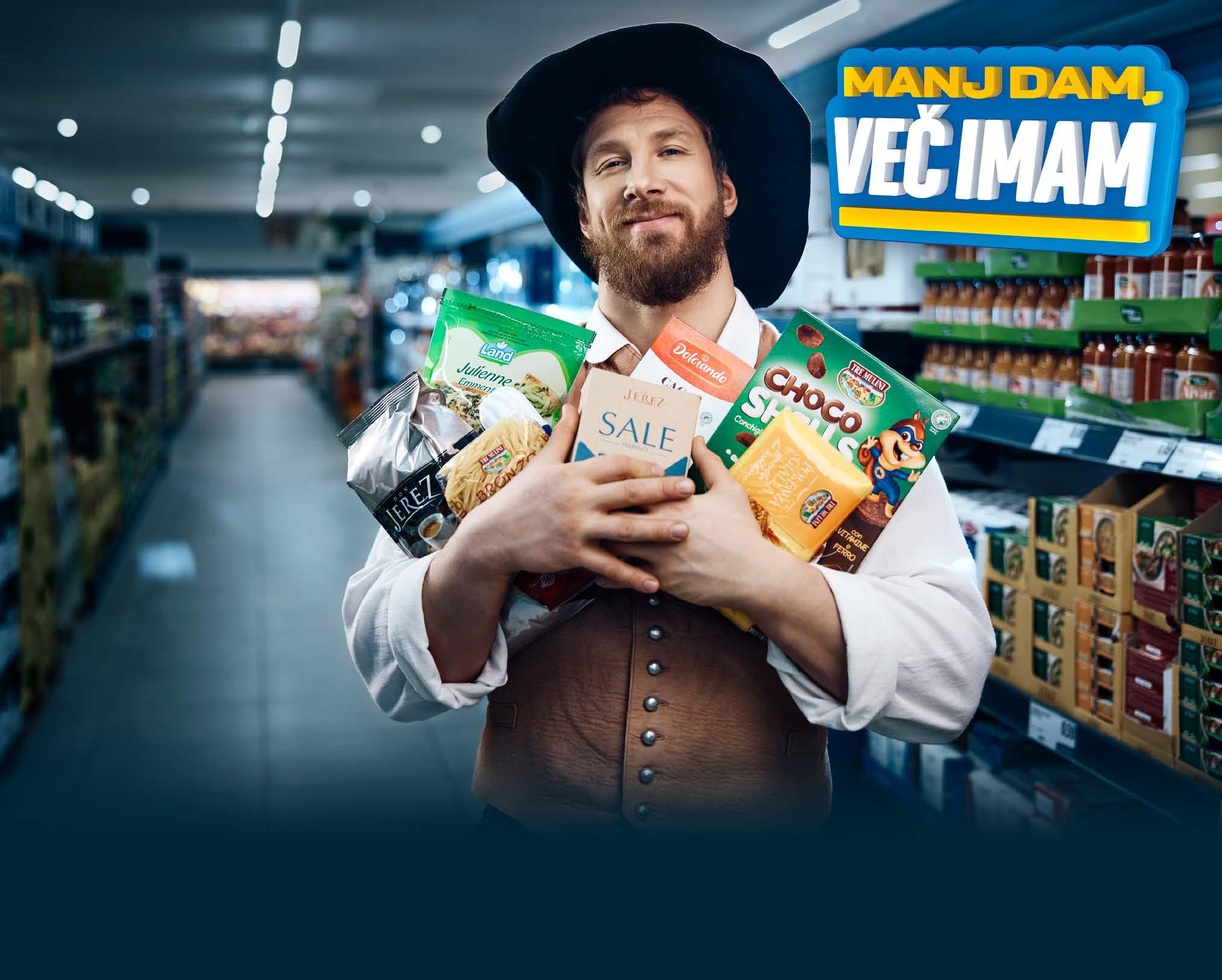 Manj dam, več imam! 0,49 0,65 / -24% BELI FIŽOL 400 g za kg 1,23 € 0,65 0,79 / -17% PIŠČANČJI NAREZEK 150 g za kg 4,34 € 0,99 OMEJENA KOLIČINA MEŠANICA STROČNIC 400 g za kg 2,48 € 1,15 1,39 / K senzoričnega ocen evan a preverjena na B otehnišk fakulteti U b ODLIČNA KAKOVOST -17% KRUH ZA SENDVIČE 250 g za kg 4,60 € 1,79 2,39 / -25% PRAŽENI ARAŠIDI V LUPINI 500 g za kg 3,58 € 1,29 -23% KAVA MINAS 200 g za kg 6,45 € 3,69 za kos OMEJENA KOLIČINA PROTEINSKI NAMAZ, SLANA KARAMELA/ KAKAV IN LEŠNIKI 300 g za kg 12,30 € 1,49 1,99 / -25% BONBONI NOIRE 400 g za kg 3,73 € 0,65 0,79 / -17% MLEČNA ČOKOLADA Z BONBONI 100 g za kg 6,50 € 1,39 1,69 / -17% HRUSTLJAVI MISLI S SADJEM 375 g za kg 3,71 € 1,15 1,49 / -22% PAŠTETA S TUNINO 100 g za kg 11,50 € 0,79 0,99 / brez glutena -20% MEHKI SADNI BONBONI GELÉES 200 g za kg 3,95 €