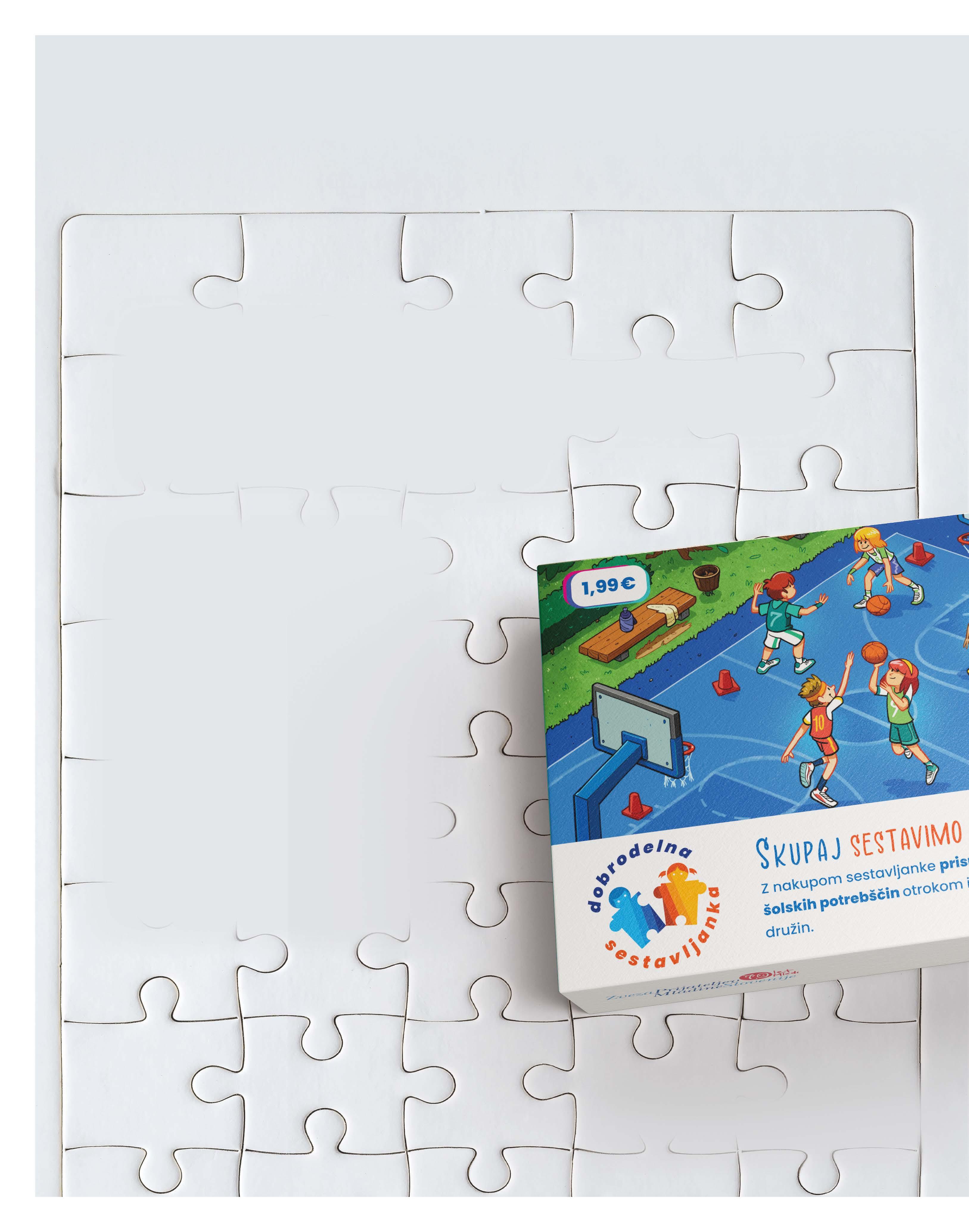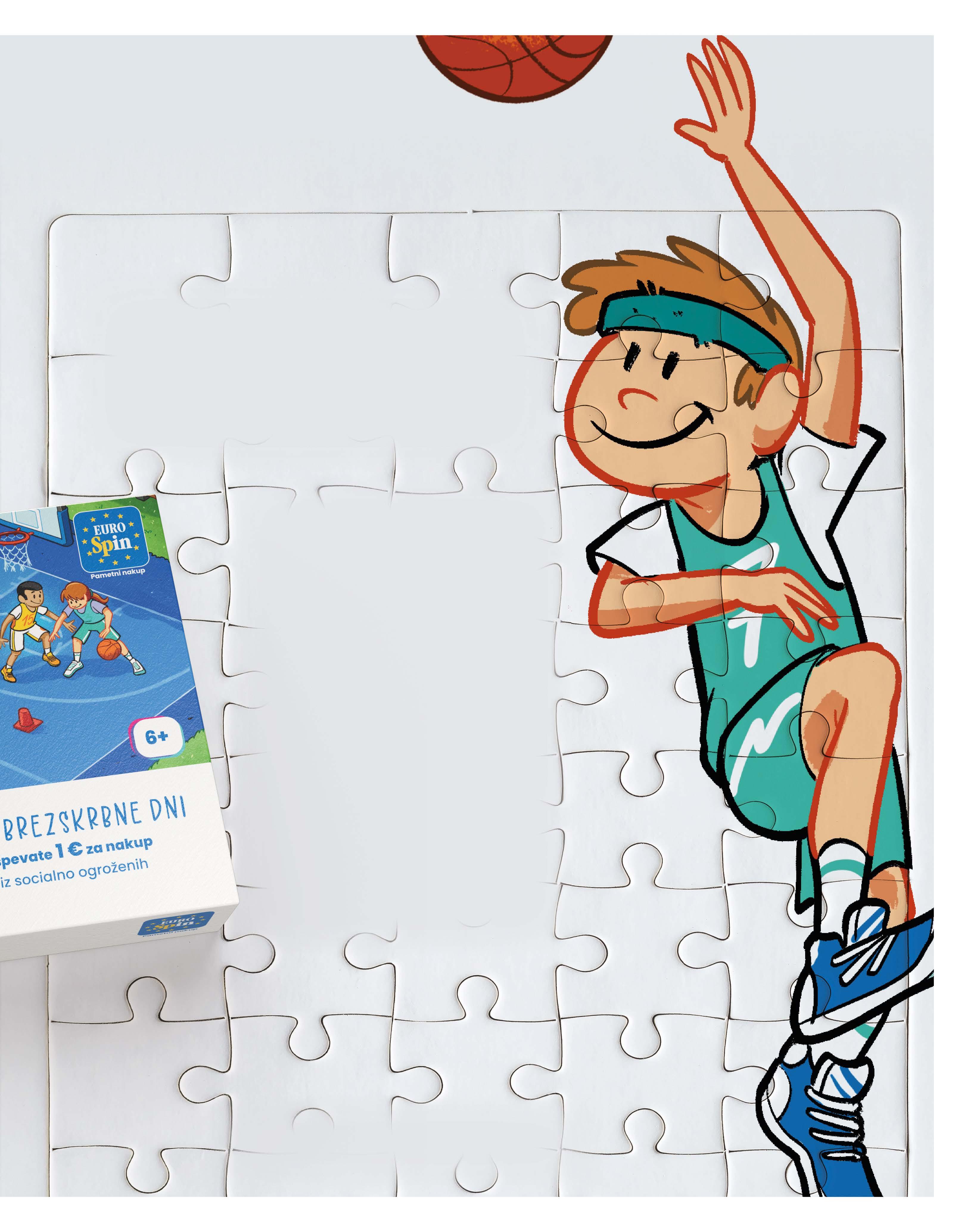 Akcijo lahko podprete z nakupom dobrodelnih sestavljank v vseh trgovinah Eurospin, v katerih sta na voljo dve različici s čudovitimi ilustracijami, ki prikazujeta otroško igro na košarkarskem igrišču. Z Eurospinovima sestavljankama se bodo vaši otroci gotovo zabavali, ustvarjalno preživljali prosti čas in trenirali svoje male sive celice.