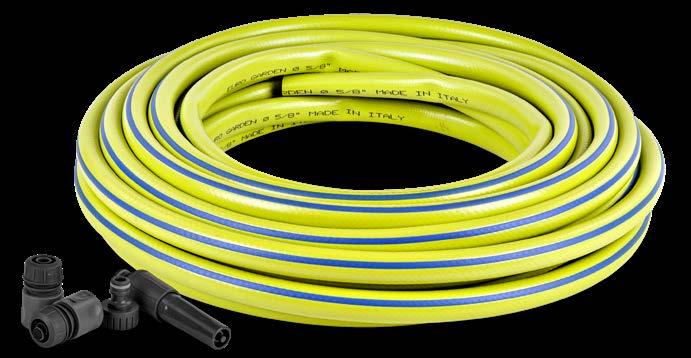 Notranjost iz štirih slojev mreže, s kompletom priključkov in pršilnikom »Acqua-stop«, dolžina: 15 m, Ø 5/8''.