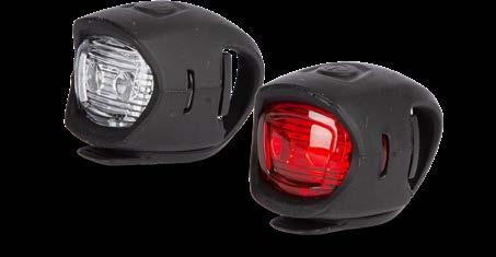 KOMPLET SPREDNJIH IN ZADNJIH LUČI ZA KOLO Iz črnega silikona, 2 beli sprednji luči LED z visoko svetilnostjo in 2 rdeči zadnji luči LED z visoko svetilnostjo, način osvetlitve: fiksna ali utripajoča. Luči so vodoodporne, s priloženimi baterijami.
