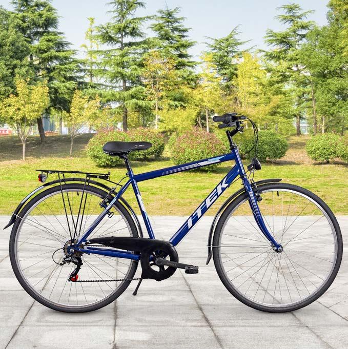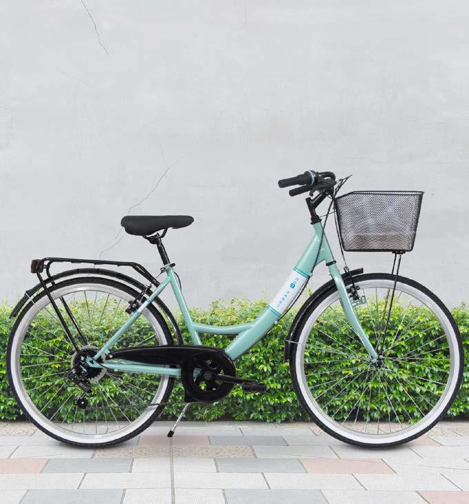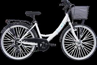 Jeklen okvir, aluminijasti obroči, 6-stopenjski menjalnik Shimano TY 21, menjalne ročice friction, jeklene V-brake zavore, luči, tačka, jekleni blatniki in prtljažnik, sprednja košara. Barva: bela ali zelena.