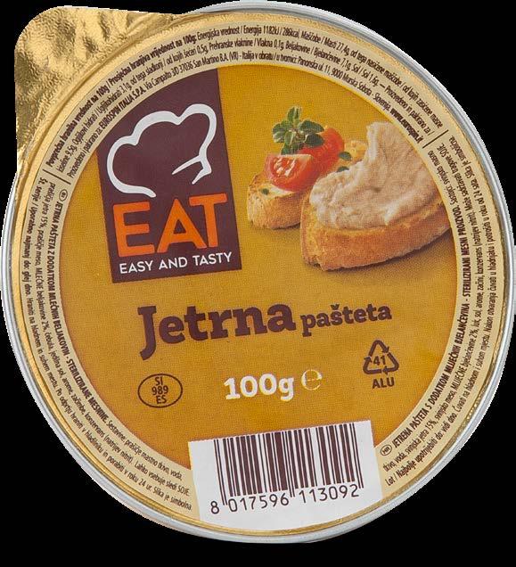 www.eurospin.si 0,79 0,99 / -20% TESTENINE GRAMIGNONE 500 g za kg 1,58 € 0,95 / -20% ZELENJAVNA MINEŠTRA 500 g za kg 1,90 € 1,29 za kos OMEJENA KOLIČINA TESTENINE S SIPINIM TARTUFI/POČRNILOM/ SICILJANSKO 180 g za kg 7,17 € 0,89 1,15 / -22% PARADIŽNIK V KOŠČKIH 680 g za kg 1,31 € 0,79 0,99 / -20% ZELENJAVNI DODATEK JEDEM 500 g za kg 1,58 € 2,69 3,39 / -20% KORUZNO OLJE 1 l 1,19 1,49 / ETORP• C T EDGEOGRAPHICALIND NOITAC -20% BALZAMIČNI KIS IZ MODENE IGP 500 ml za l 2,38 € 0,99 1,19 / -16% ZELENE OLIVE BREZ KOŠČIC 545 g za kg 1,82 € 0,39 0,55 / -29% JETRNA PAŠTETA 100 g za kg 3,90 € 1,89 2,29 / -17% BELI ŠPARGLJI 330 g za kg 5,73 € 0,55 0,69 / -20% ČIČERIKA 400 g za kg 1,38 € 1,19 za kos 1,39 / -14% SKUŠA S FIŽOLOM/ Z ZELENJAVO 105 g za kg 11,34 € 2 PORCIJI 2 PORCIJI