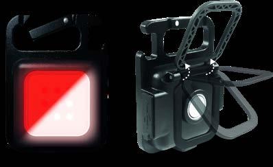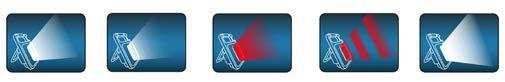 Moč 400 lumnov, različni načini svetlobe: visoka moč svetlobe, srednja bela, rdeča, utripajoča rdeča ali bela in izjemno močna bela. Možnost polnjenja prek USB vhoda.