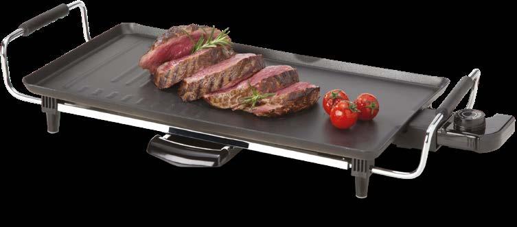 NAMIZNI ŽAR TEPPANYAKI Velika plošča iz tlačno litega aluminija, mere 46,5 x 26 cm, s premazom proti prijemanju, nastavljiva temperatura do 210 °C, moč: 2000 W.