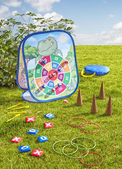 za igre metanja, na voljo različice: metanje žogice z ježkom v tarčo, metanje žogice ali blazinice skozi luknjo, metanje blazinice na igralno ploščo, metanje obroča na stožec, za otroke, starejše od 3 let