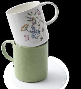 iz keramike, z delikatnim reliefom, na voljo: enobarvna, ali s cvetličnim motivom, prostornina: 460 ml