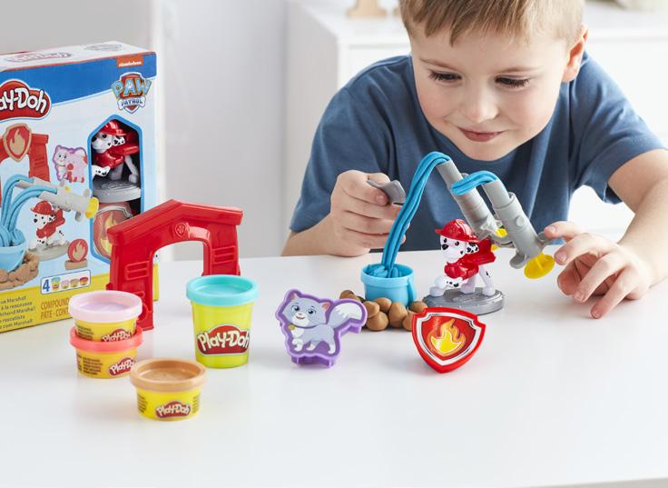 v kompletu: figura psa Maršala, model značke in mačke Cali, plastični nož, vedro, vrata gasilske postaje in 4 posodice s plastelinom