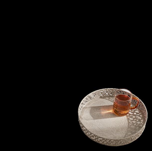 kovinski, z izrezljanim detajlom na robu in reliefnim vzorcem na dnu, premer: 30 cm, višina: 5 cm