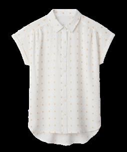 za ženske, z ovratnikom in zavihanimi rokavi, zapenjanje z gumbi, z delikatnim pikčastim motivom, velikosti: 36–46