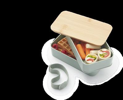 Posoda za malico z dvema predelkoma, z bambusovim pokrovom in nastavljivim silikonskim trakom, velikost: 19 x 10,5 x 9 cm
