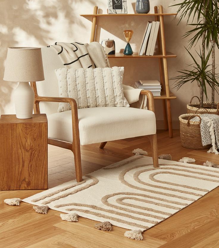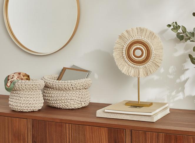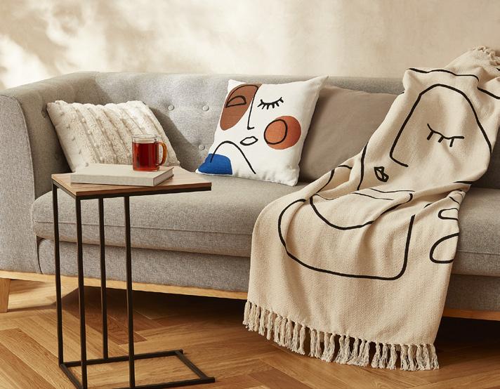 resicami, s potiskom, velikost: 130 x 160 cm Posoda keramična, s pokrovom, tribarvna, premer: 12 cm, višina: 11,5/13,7 cm Za prenosni računalnik, skodelico kave ali knjigo. Funkcionalna stranska mizica v loft stilu opravlja funkcijo premične namizne plošče in omogoča varčevanje s prostorom.