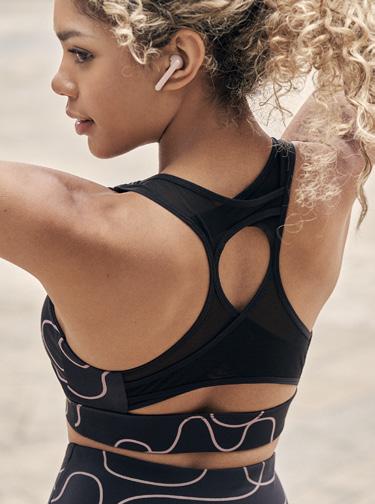 na voljo: nedrček z odstranljivimi blazinicami in široko elastiko pod prsmi, s srednjo oporo in potiskom, velikosti: S–XL – 7 EUR ali pajkice, hitro sušeče, neprosojne, s široko elastiko v pasu in z učinkom oblikovanja postave, s potiskom, velikosti: XS–XL – 12 EUR