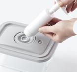 Preden vzamete živilo iz posode, pritisnite na zračni ventil, ki omogoči odpečatenje.