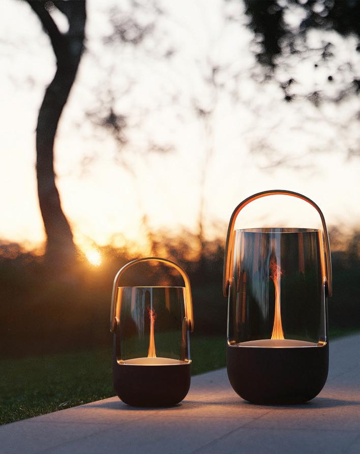 Laterna za notranjo ali zunanjo uporabo, z učinkom plamena v barvi jantarja in ročajem iz bambusa. Uporabljate lahko z vašim najljubšim eteričnim oljem.