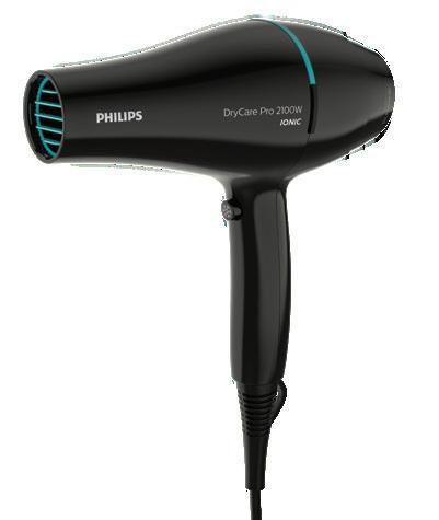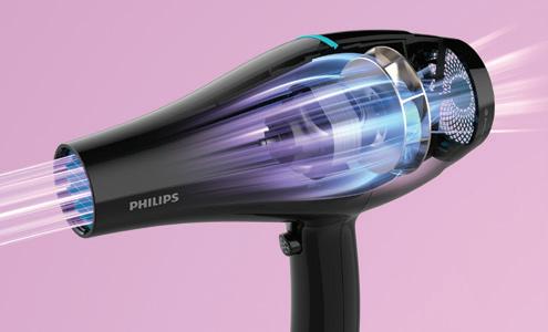 Sušilnik Philips Pro ima zmogljiv motor AC, ki je bil razvit za profesionalno tržišče. Proizvaja zrak hitrosti do 130 km/h* za hitro in učinkovito sušenje.
